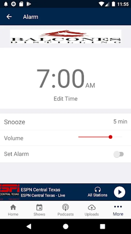 Wake up with Centex Sports Fan's alarm clock feature