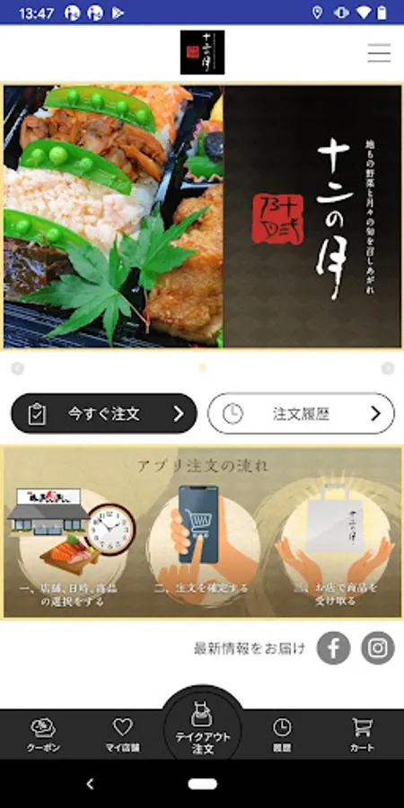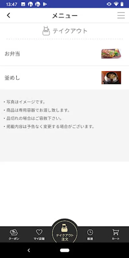 お持ち帰りのお料理などをスマホから注文予約できます