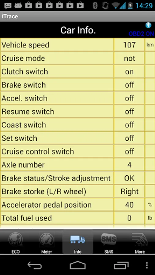 According to the National Highway Traffic Safety Administration explain, three of the riskiest driving behaviors are hard acceleration, hard deceleration, and hard swerves. The app is linking to the OBD of your vehicle and via BT3647 device providing real-time information that you need to know including speed, rpm, battery voltage, engine coolant temperature, fuel level,engine loading etc...In addition, based on the data including harsh acceleration, braking and cornering. The app will rate safety score of your driving behavior. It also provide fuel consumption, speeding alert, it is able to remind driver how fuel-efficient driving, and collect heavy duty vehicles's FMS data, SMS of GPS location and car information.