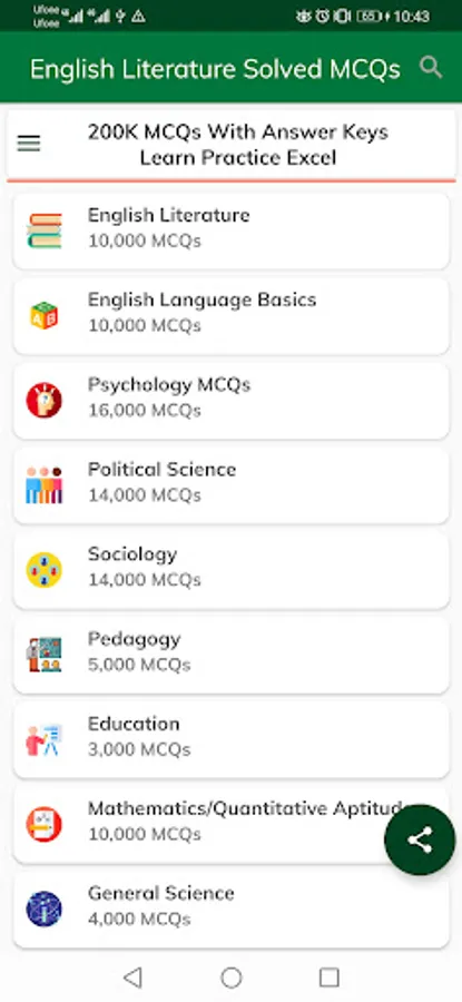 (01) Practice More than Solved 95,000 English Literature and other subjects Multiple Choice Questions with auto-correction features.