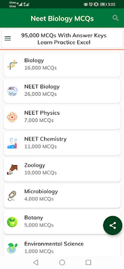 "NEET Biology MCQs" - An Android Application containing more than 50,000 MCQs of Biology/Medical Sciences, Physics, Chemistry, Biotechnology, Anatomy, Molecular Biology, English Basics and other subjects MCQs with Answer Keys.