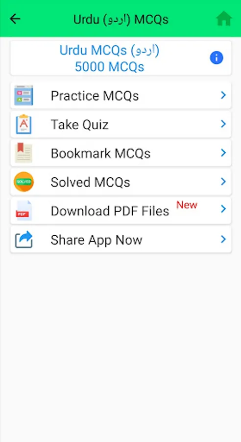 "Urdu (اردو) Language MCQs" - An Android Application containing more than 95,000 subject wise and topic wise multiple choice questions. This bank of Multiple Choice Questions (MCQs) focuses on all core areas of Urdu Language, Mathematics, Islamic Studies, Zoology, General Knowledge, Geography, current affairs, microbiology, biology, environmental sciences, chemistry, Urdu language MCQs, computer sciences, English literature, political sciences, physics, health & physics education etc.. These topics are chosen from a collection of most authoritative and best reference books on Urdu MCQs. One should spend 1 hour daily for 5-6 months to learn and assimilate core subjects of Urdu Language MCQs comprehensively. This way of systematic learning will prepare anyone easily towards Urdu MCQs interviews, online tests, examinations and certifications. Here’s the benefits of our completely solved Urdu Language MCQs questions and answers: