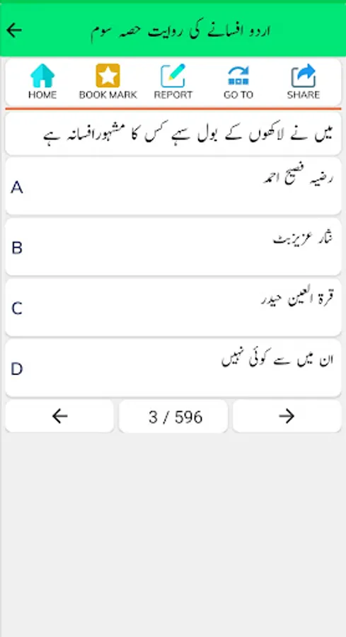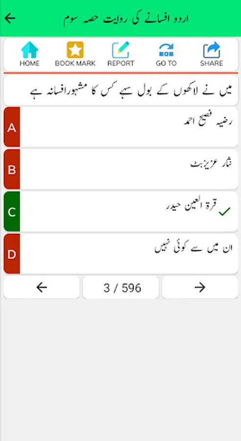 Practice more than 95,000 Urdu (اردو) Language, Islamic Studies, General Knowledge, current affairs, biology, chemistry, physics, health & physics education, Urdu language, English literature, political sciences etc. MCQs & other subjects Multiple Choice Questions - MCQs based tests, quizzes and interview questions with Auto-Correction Feature.