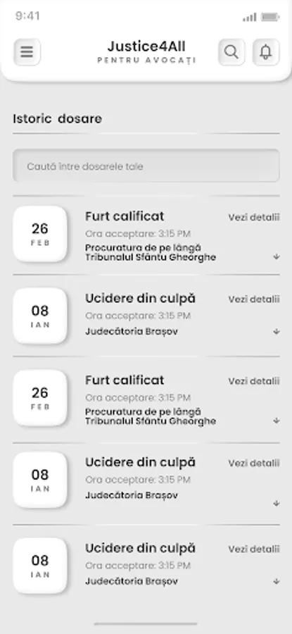 The Justice4All application allows any lawyer within the local bar, to have access, based on a user and a password, to the platform which, based on efficient algorithms, allows the equitable distribution of legal assistance ex officio.