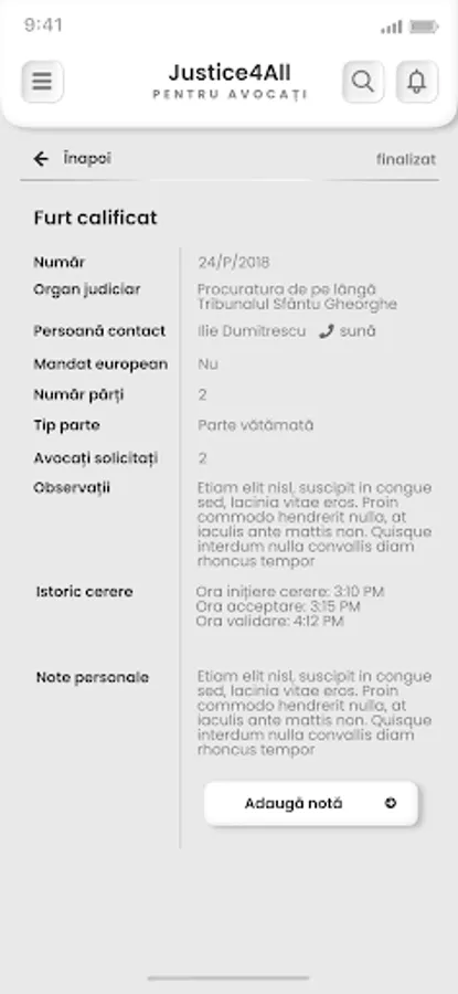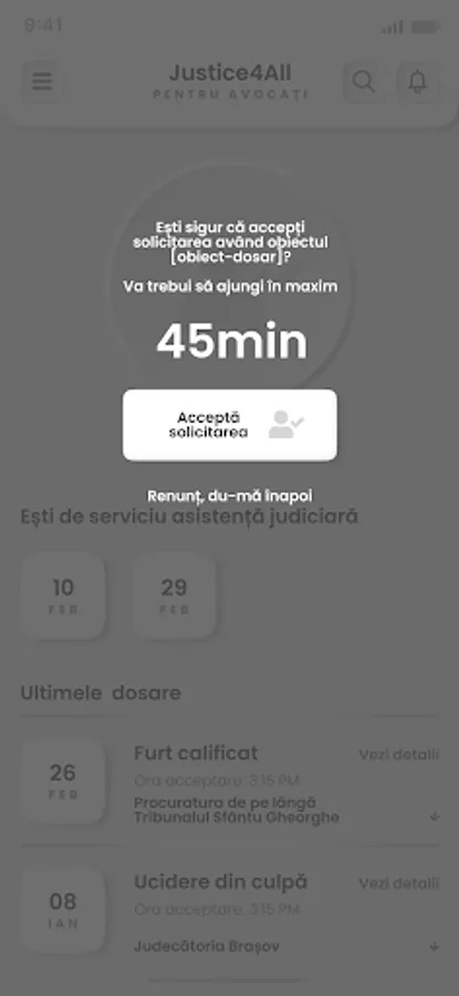 Lawyers will receive notifications of the launch of a request for mandatory legal assistance, and as a consequence, all lawyers registered in the database of the bar within which the respective request is made, will receive an invitation to appear. The system is based on the efficiency with which a certain request is solved.