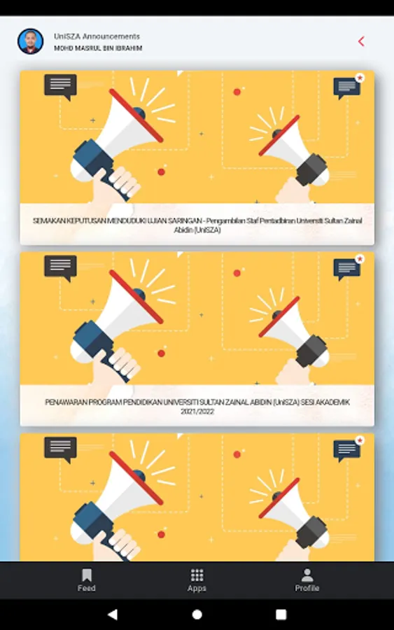 Every UniSZA's student and staff was suggested to download this apps. This apps was developed to support student and Staff to achieve the information with easy way. beside that this apps also can support the staff to registered the attendance use Smart Attendance Module.