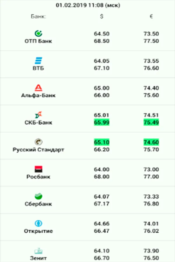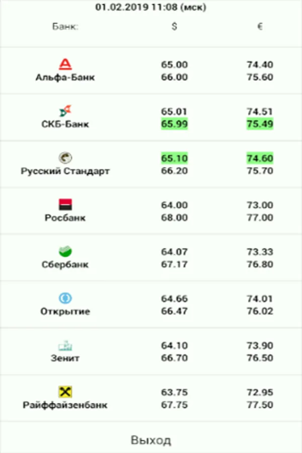 Exchange rates in banks of the Russian Federation. Indication of the best courses.