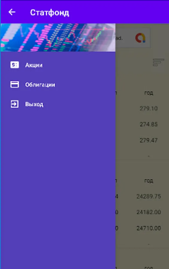 The application contains statistical data on the stock market.