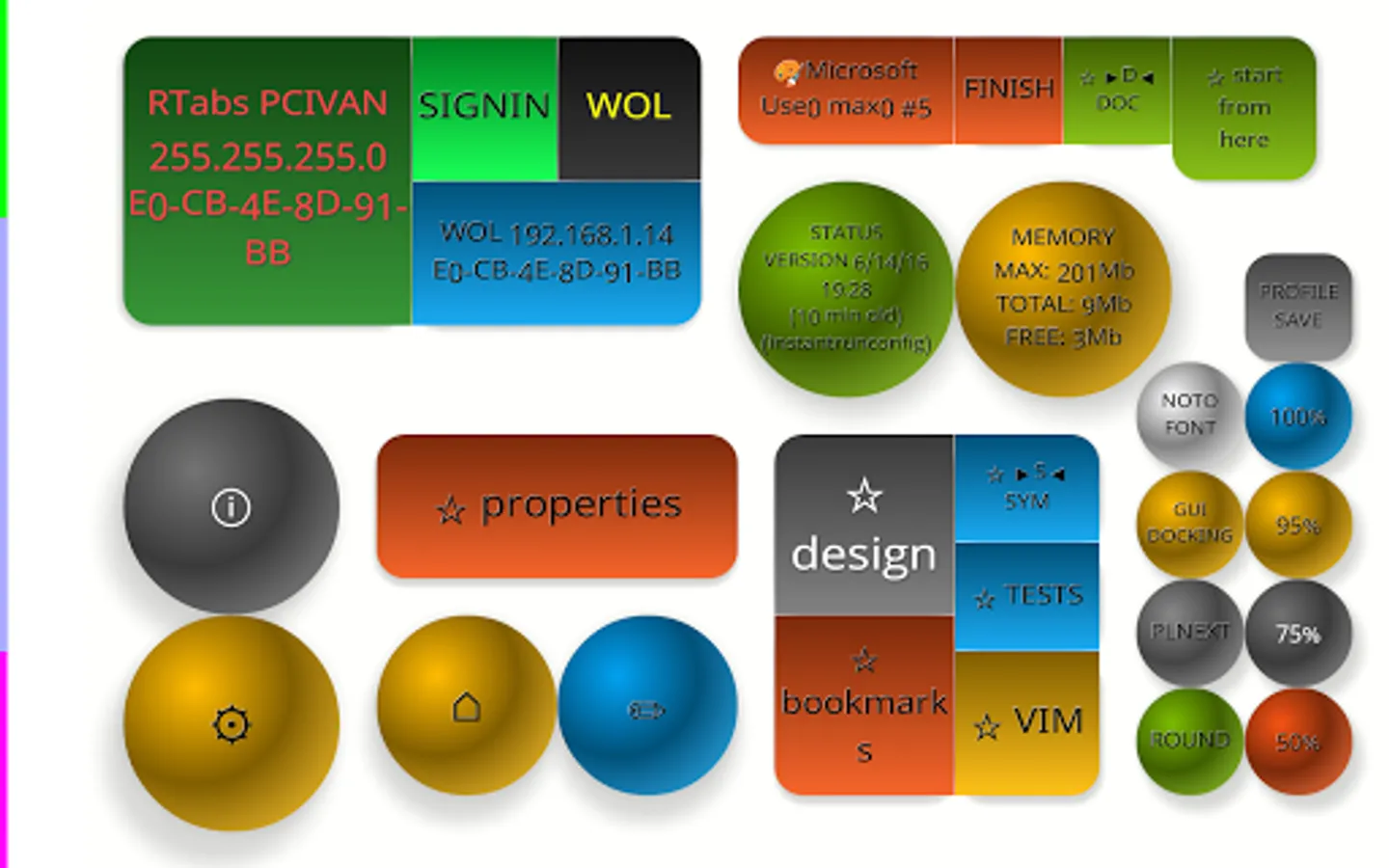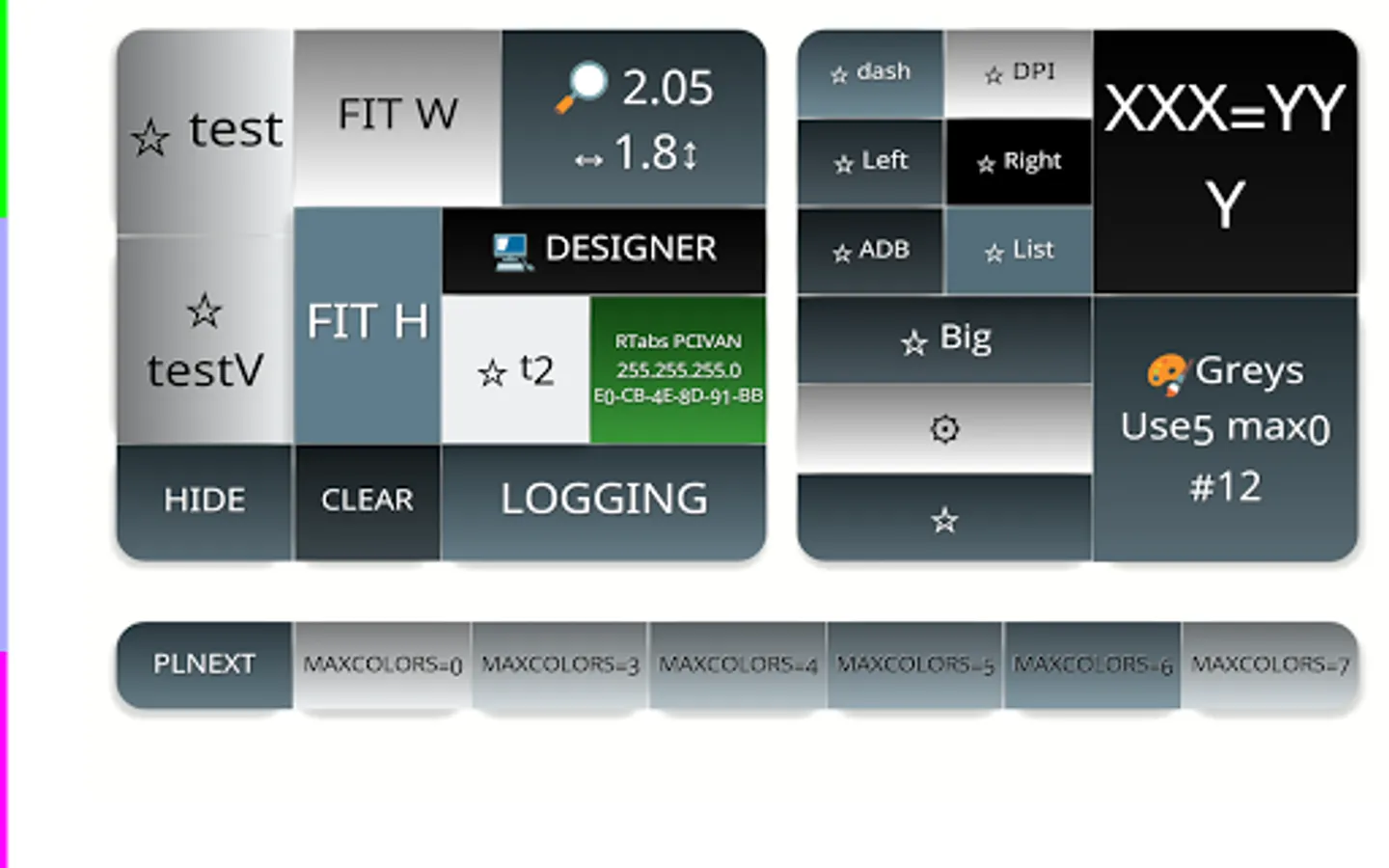 - Buttons can send Windows command over Wifi to a desktop running the companion server and designer apps.