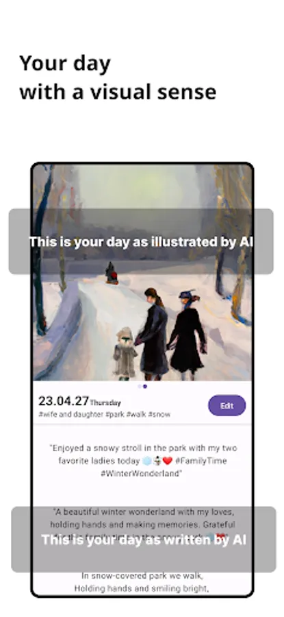 Capture your precious moments of the day with various picture and writing styles, along with your personal touch: