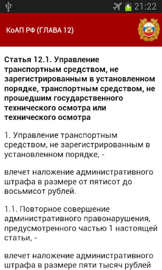 Chapter 12 of the Code of Administrative Offences of the Annex, lists the compositions of administrative delicts in the field of road traffic.