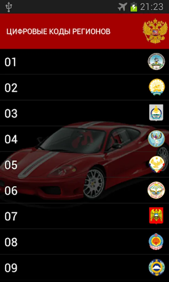 In addition, the application reflects the digital codes of the Russian regions, used in the state registration of vehicles.