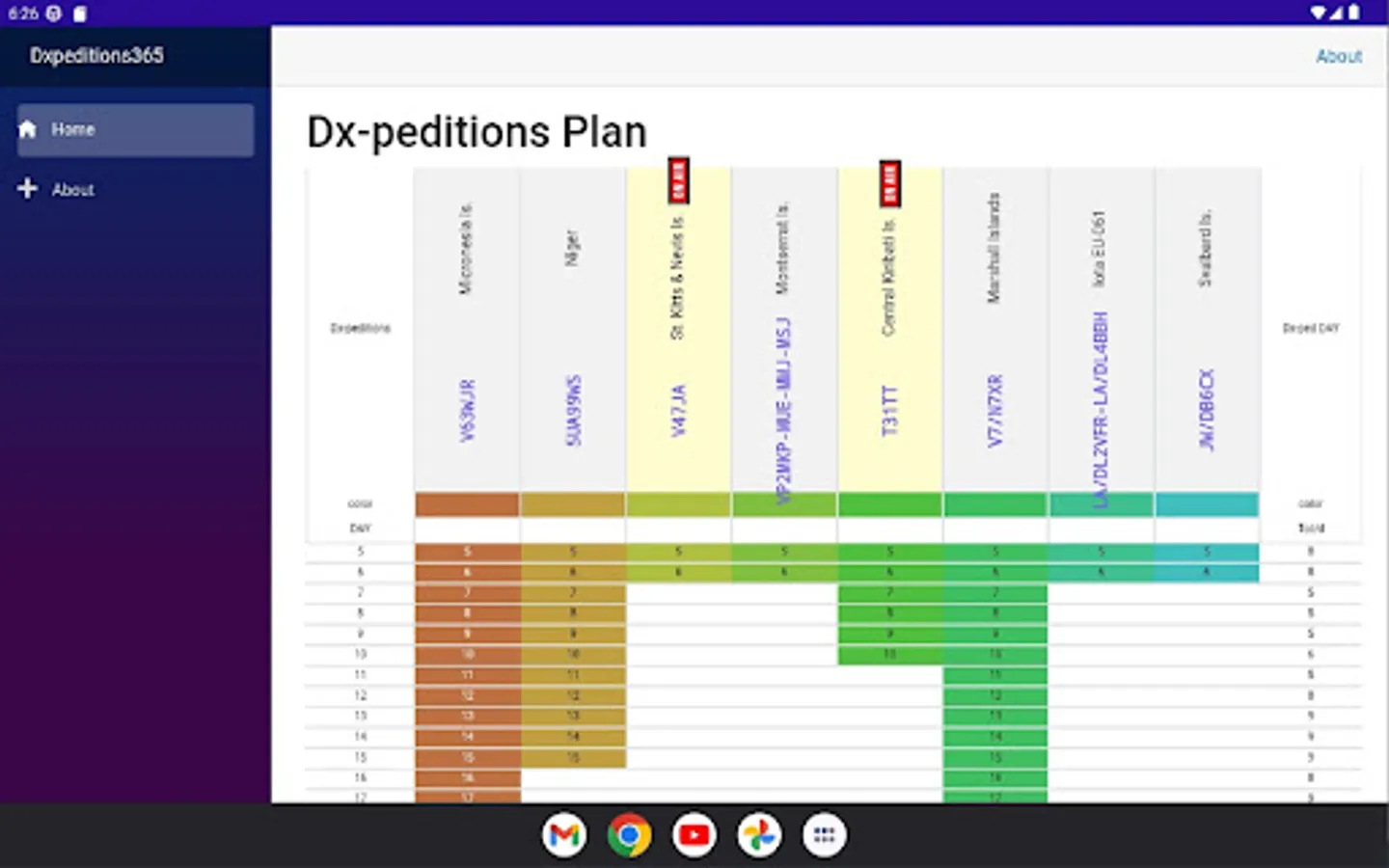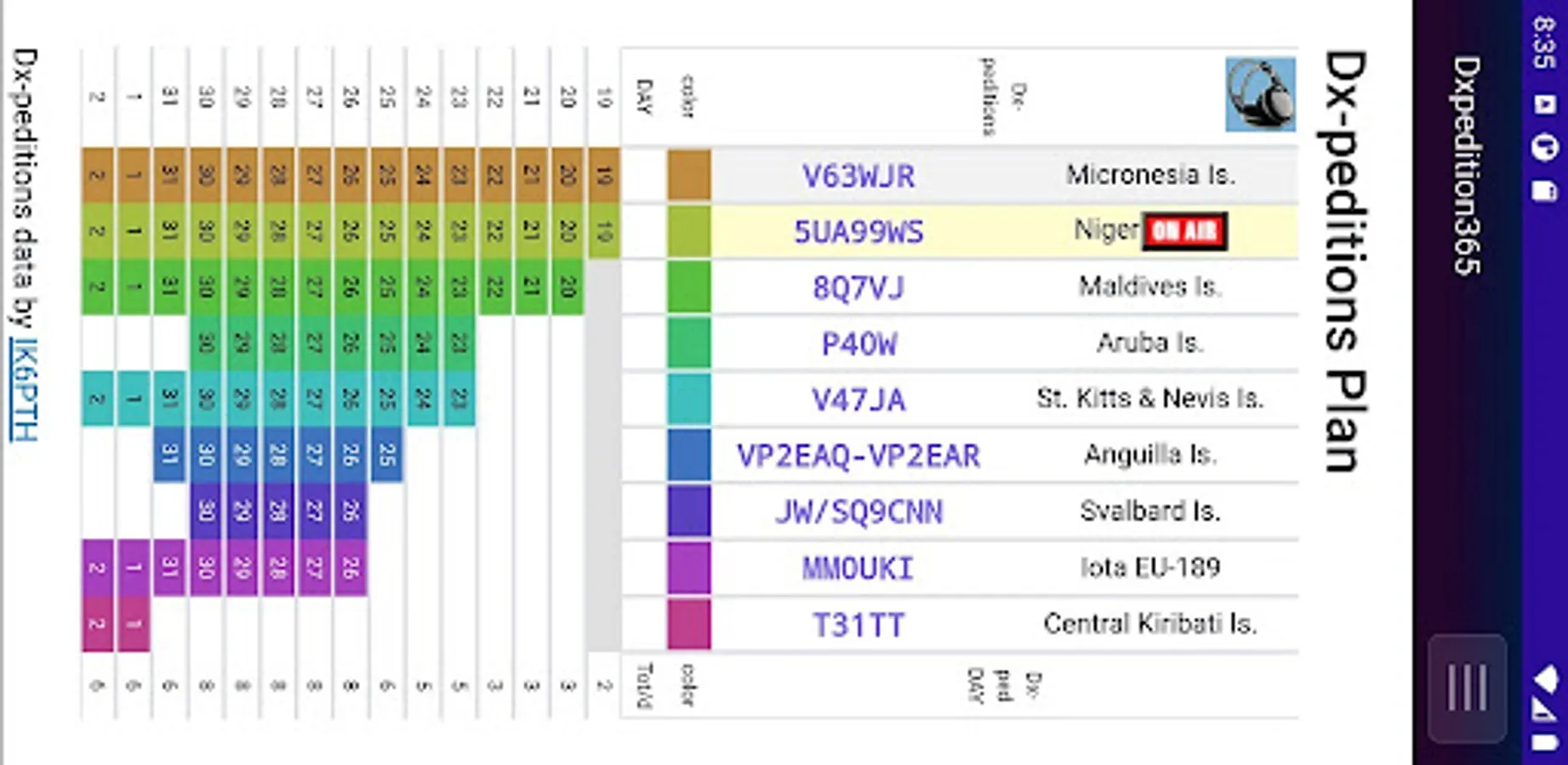 Dx-peditions365 let you follow the main DX-peditions on a dedicated calendar page that shows the schedule of all monthly expeditions, running dxpeditions and even shows the dxpeditions reported on their users logs or cluster spots. App dedicated to amateur radio - https://www.ham365.net/Dxpeditions