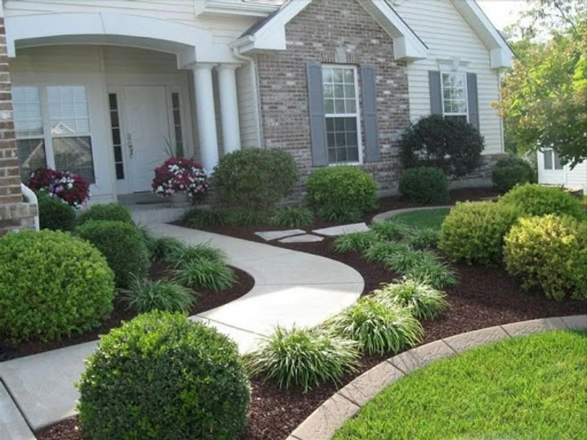 There is a vast, open green space framed by colorful flowering trees and lined with low beds. A small flower garden can give texture, color, and fragrance to your front yard. For a large, demanding lawn, use grass, which is drought tolerant and durable.