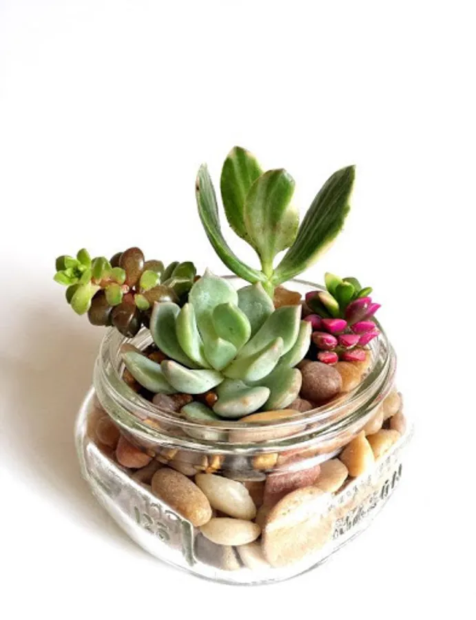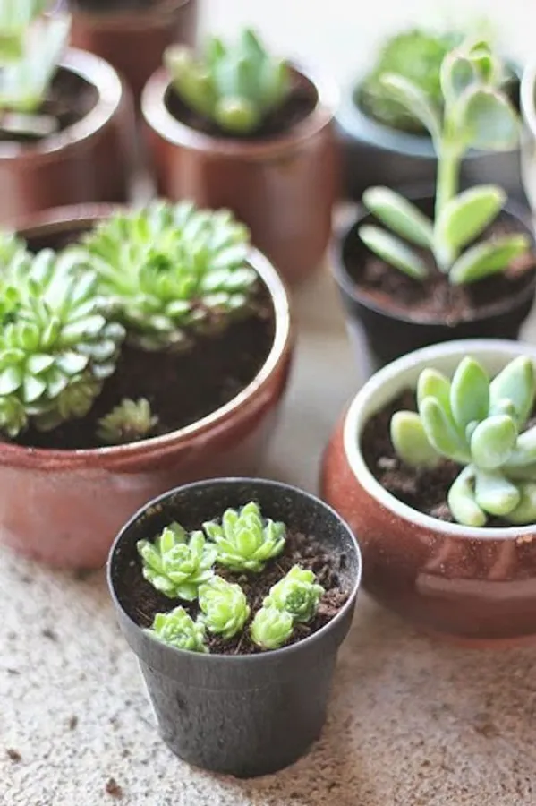 Succulents can live in multiple types of vessels, from small pots to large pots and even in the bottom.