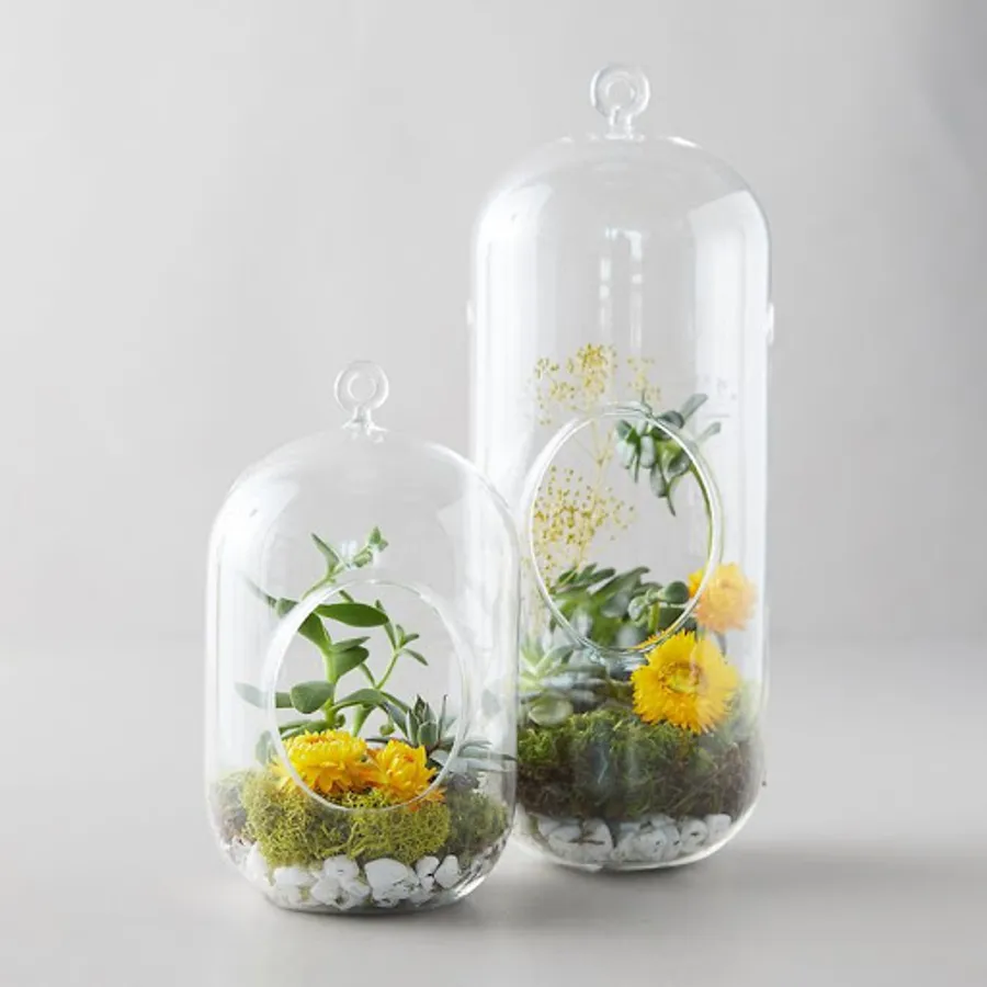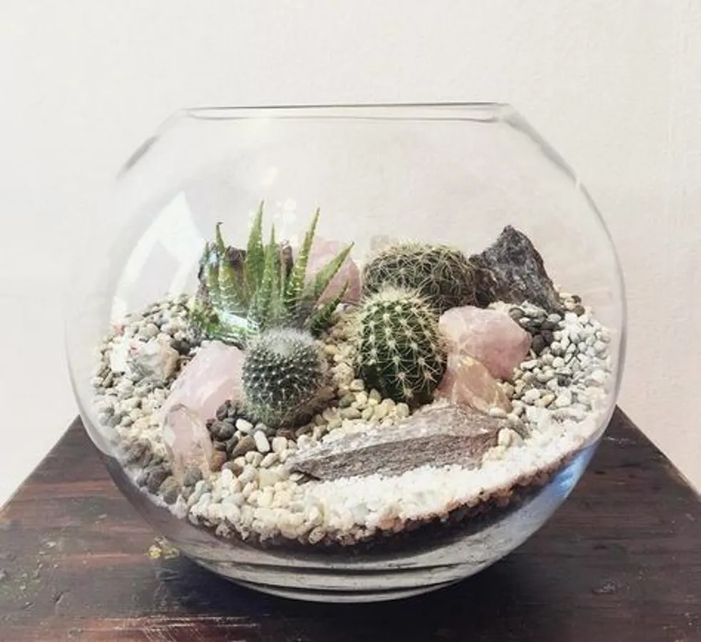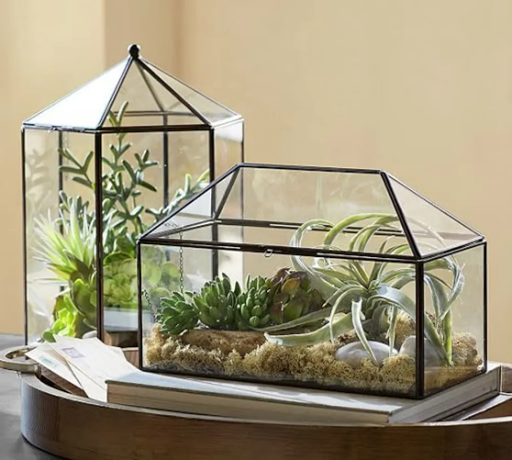 Glass terrarium containers protect small indoor plants from draughts and decorate your home in an attractive eco-style. Glass terrariums and container shapes lift your smaller indoor plant out of the drafts. In contrast, they are decorated in an attractive eco-style.