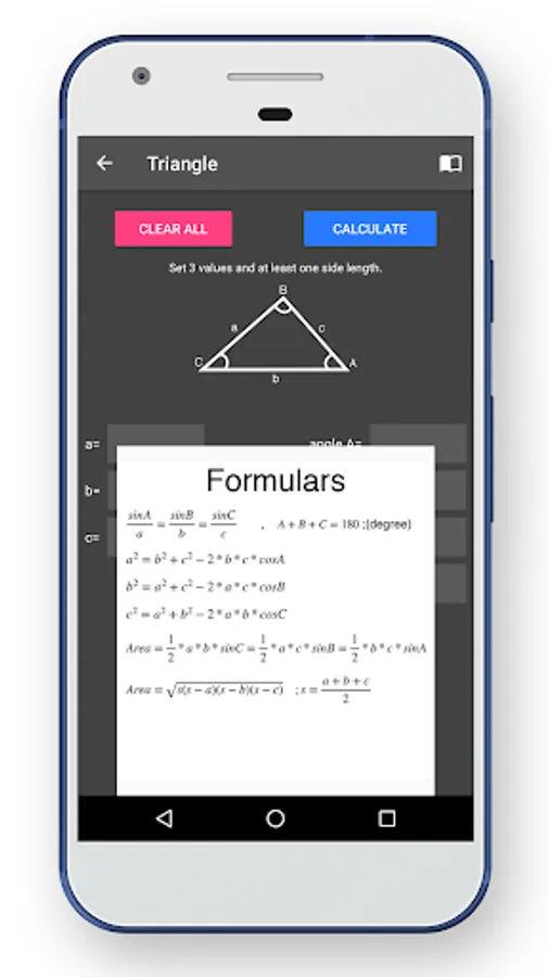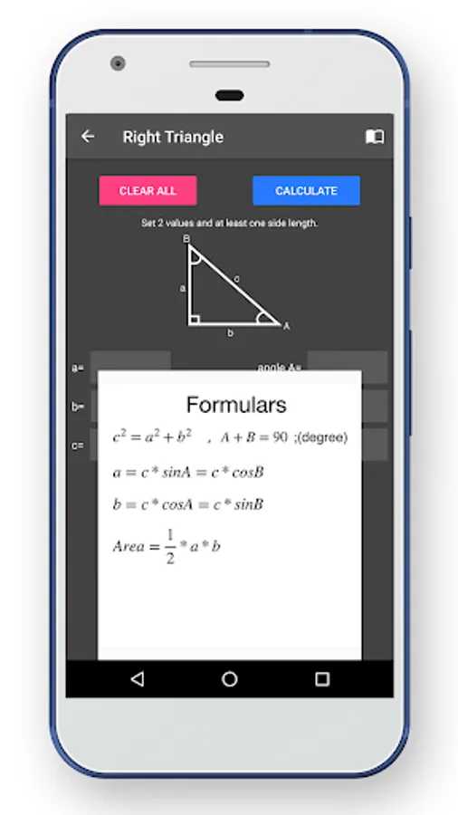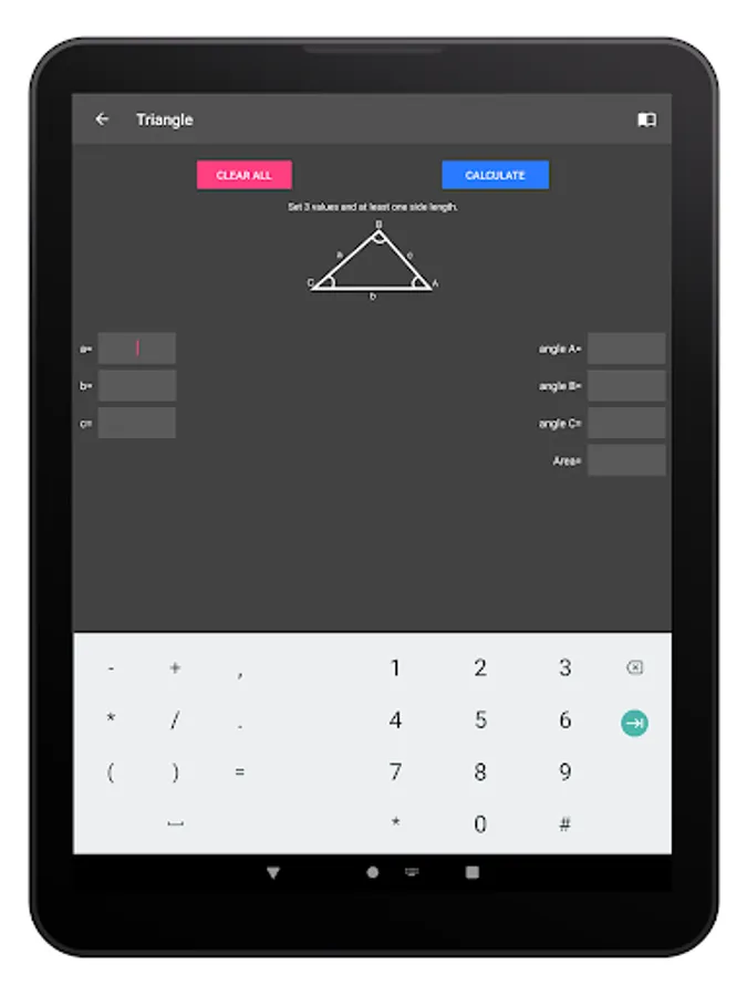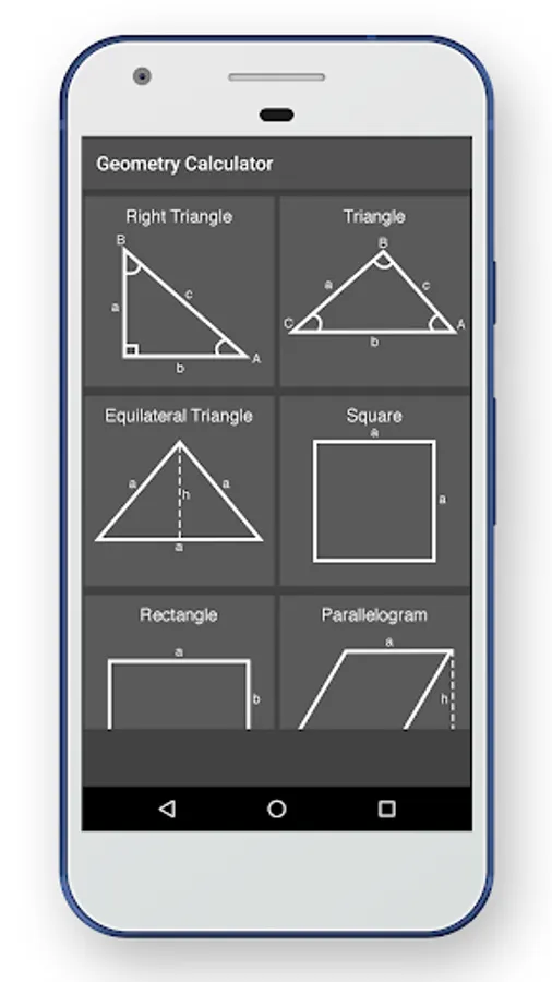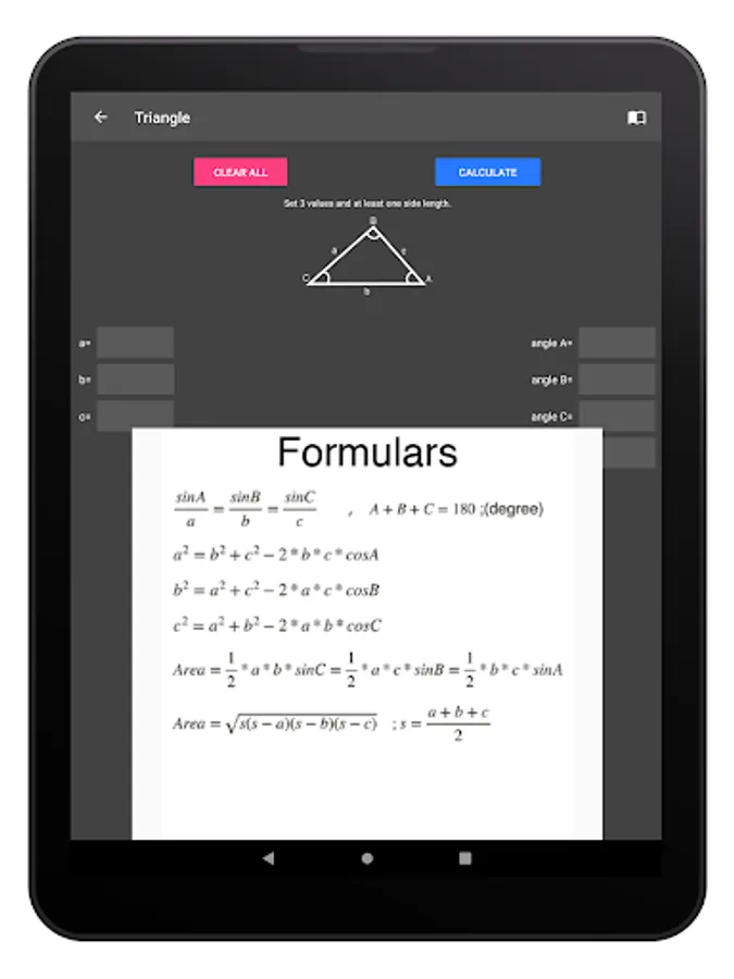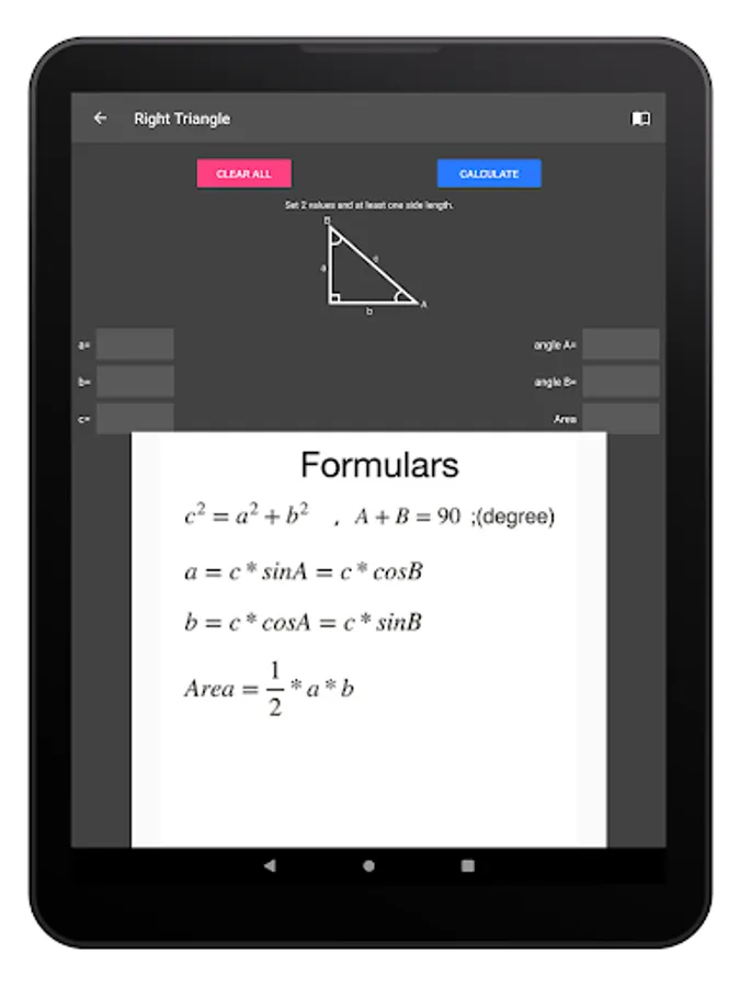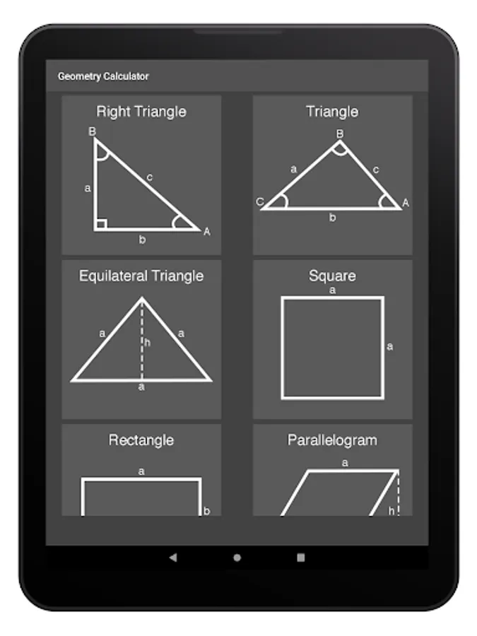 This app lets you easily calculate the length, angle, or area of a geometric shape. Include summaries of mathematical equations for calculations in geometry.