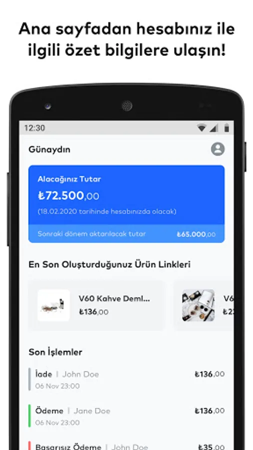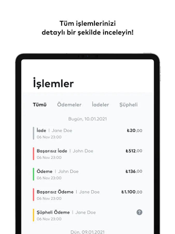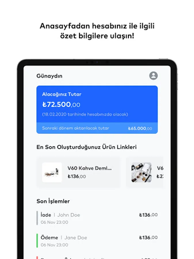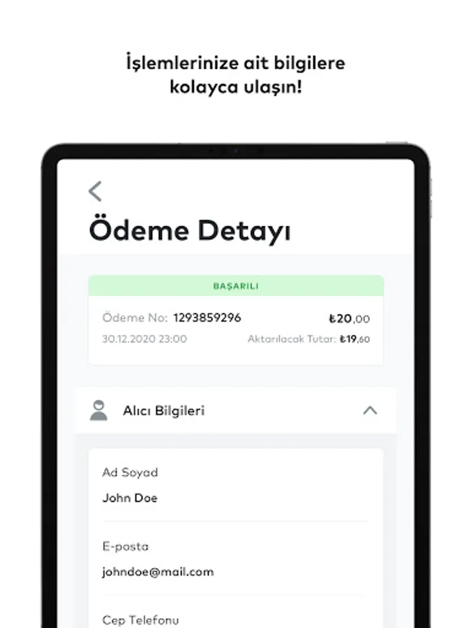 * With iyzico control panel, you can track the payments you receive in real-time on the mobile app or your PC.