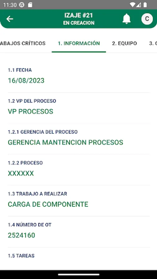 This tool allows you to obtain all the information of a lift, load weight, tension load, equipment, workers, riggers, etc.