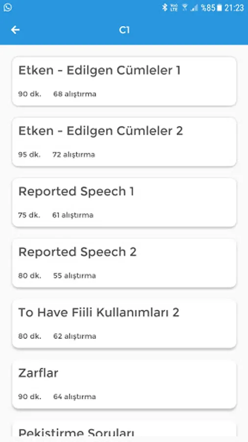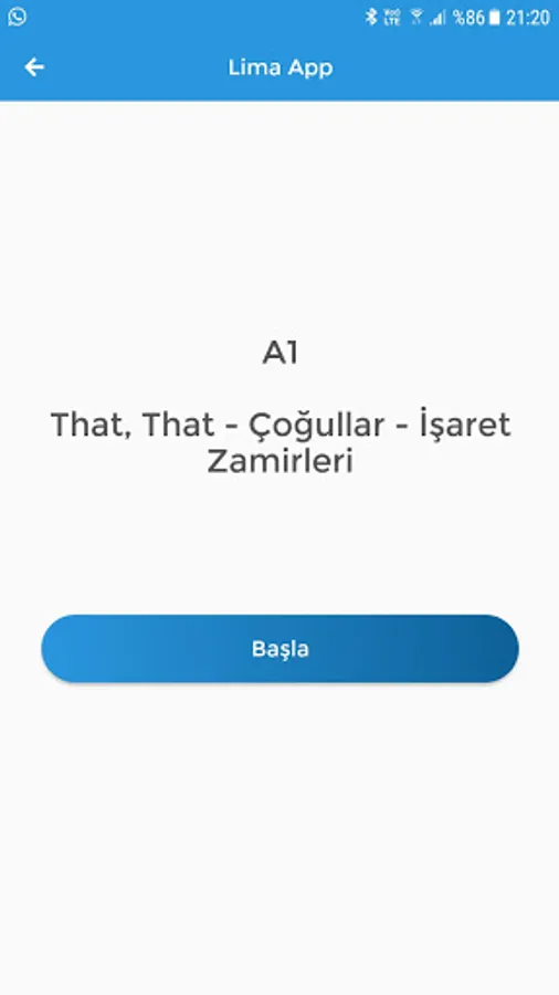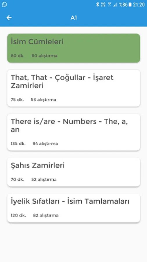 Lima App uygulamasının gramer konu başlıkları ve önerilen çalışma süreleri: