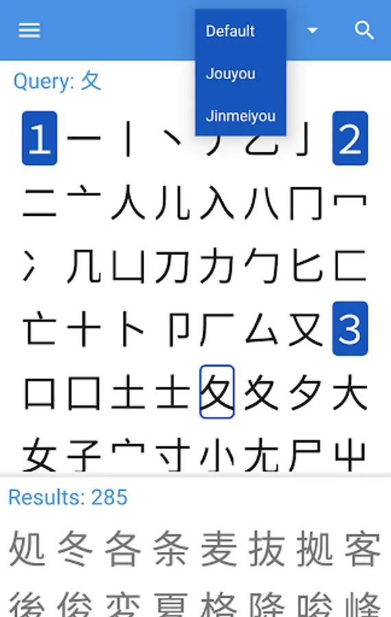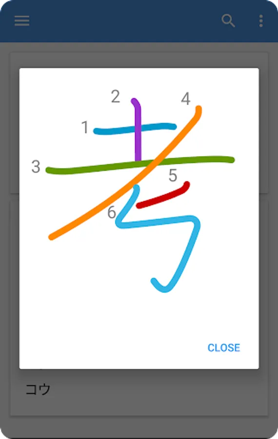 Colored stroke order diagrams for over 6000 kanji.