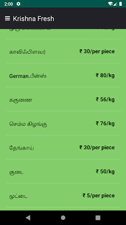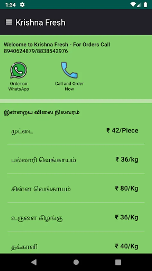 Krishna Fresh - Vegetable shop in sivakasi. This app helps you to get the latest prices of vegetable market