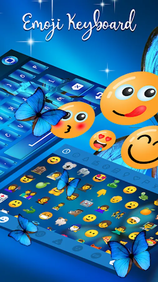 Blue Butterfly Keyboard is a free, customized keyboard for Android with cool fonts, 3200+ emoji, emoji arts, emoticons, personalized themes, auto-correct input and word predictions.