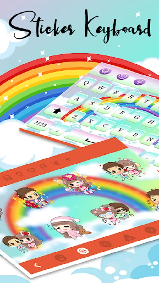 Get the exquisite Rainbow Gradient Keyboard for free! Rainbow Keyboard Theme gives you the best keyboard background, Fonts, Sticker and emojis for free!