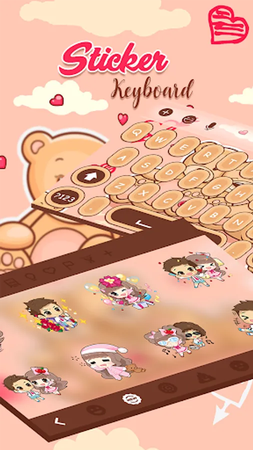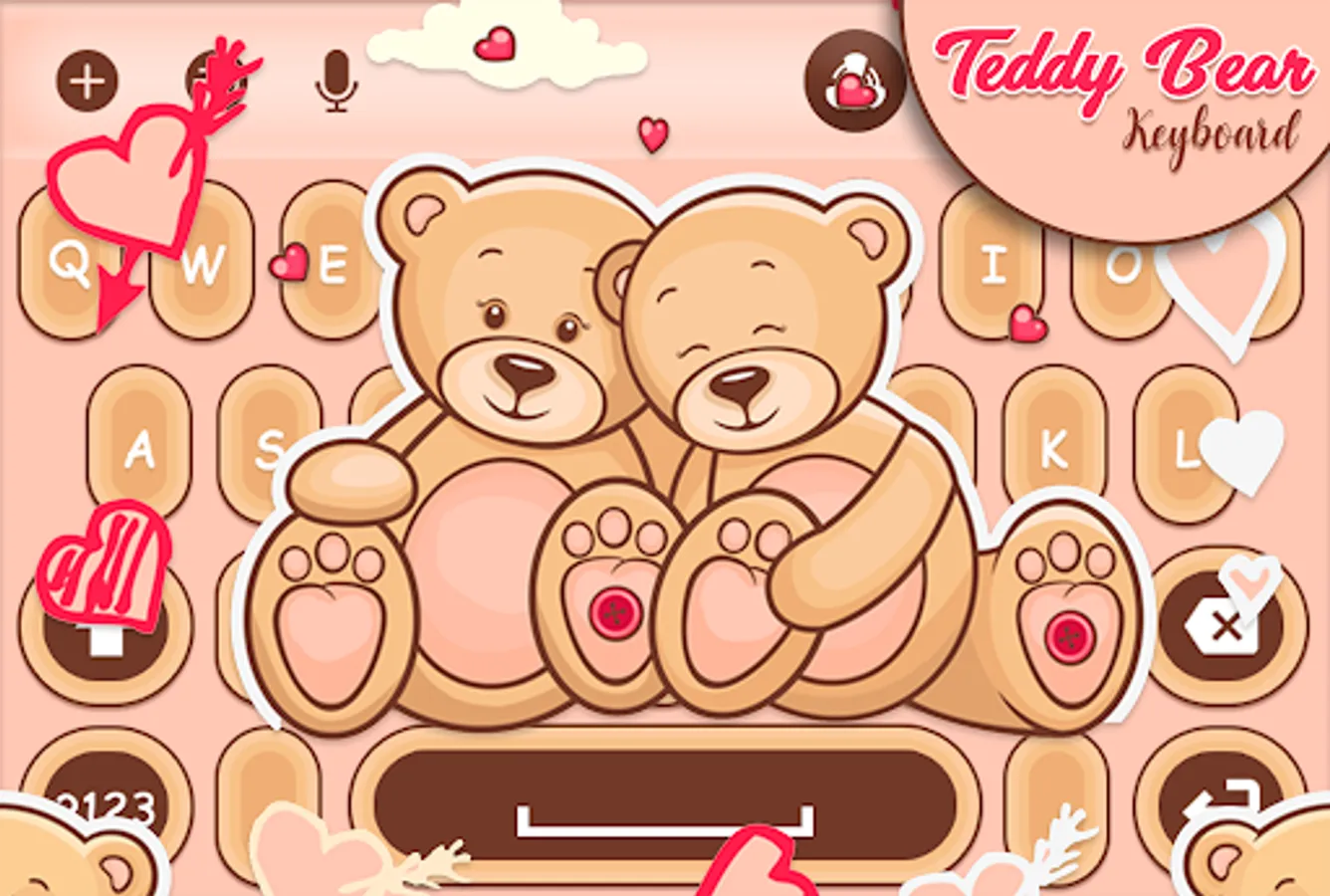 Teddy Bear Keyboard Theme. Want your phone awesome?Let Teddy Bear Couple Keyboard Theme help you!Take the Teddy Bear Couple keyboard and have your splendid experience now! Check this FREE personalized design for your Teddy Bear Keyboard Theme! Go and type interestingly!