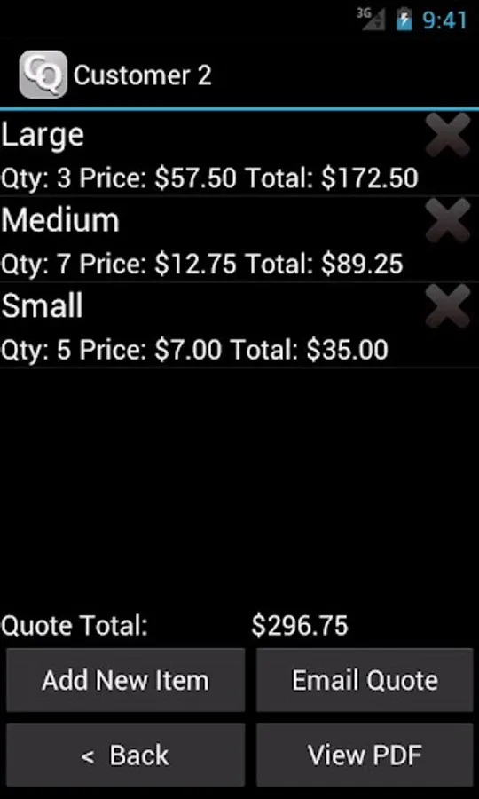 This is a trial version, so there are some limitations. Only three quotes can be created and each quote can only have three items on it, If you like this app, then please purchase the pro version (https://play.google.com/store/apps/details?id=jad.quotes.android) and see how you can boost your productivity and improve your response time to your customers.