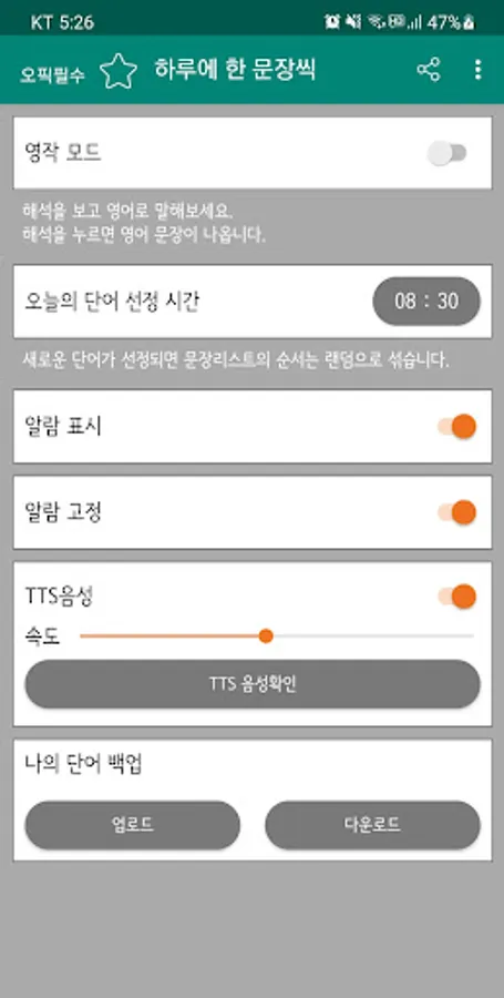 One sentence per day Alarm / TTS Listening / Sentence Favorites / Sentence input