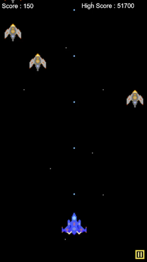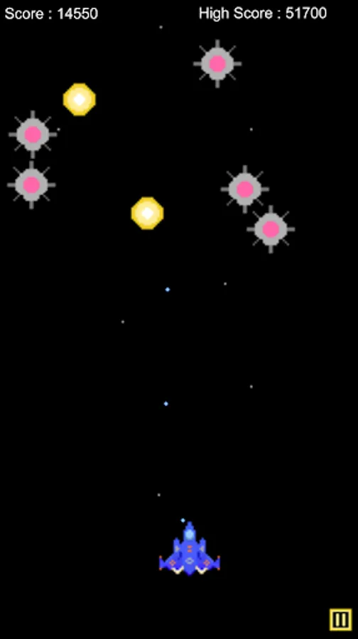 Destroy incoming enemies and obstacles by controlling them with the virtual joystick at the bottom left of the screen.
