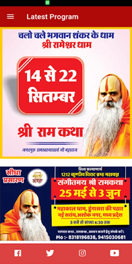 Jagadguru Ramswaroop Acharya Ji maharaj is a famous Hindu Kathakaar who is admired and adored all over India and her popularity is spreading infectiously all over the world. A calming smile that soothes troubled souls, a personality that has the power to heal lives and help people to deal with life's problems, Jagadguru Ramswaroop Acharya Ji has been impressing all with her Kathas.