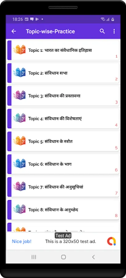 This App Contain MCQ, One Liner, Practice MCQ Related to Indian Constitution in Hindi