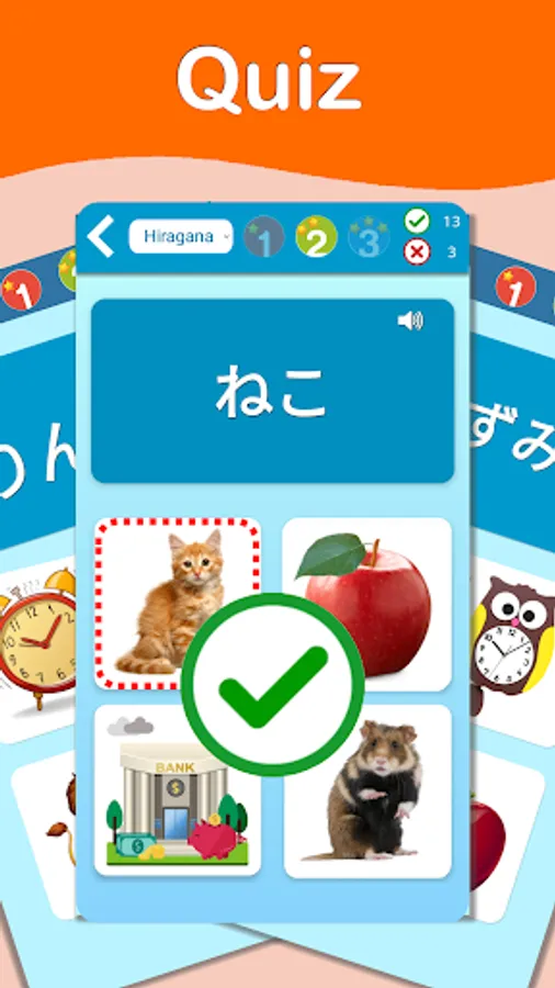 The best way to get started learning the Japanese Kana, which contains 46 Interactive flashcards, each card are voice-enabled.