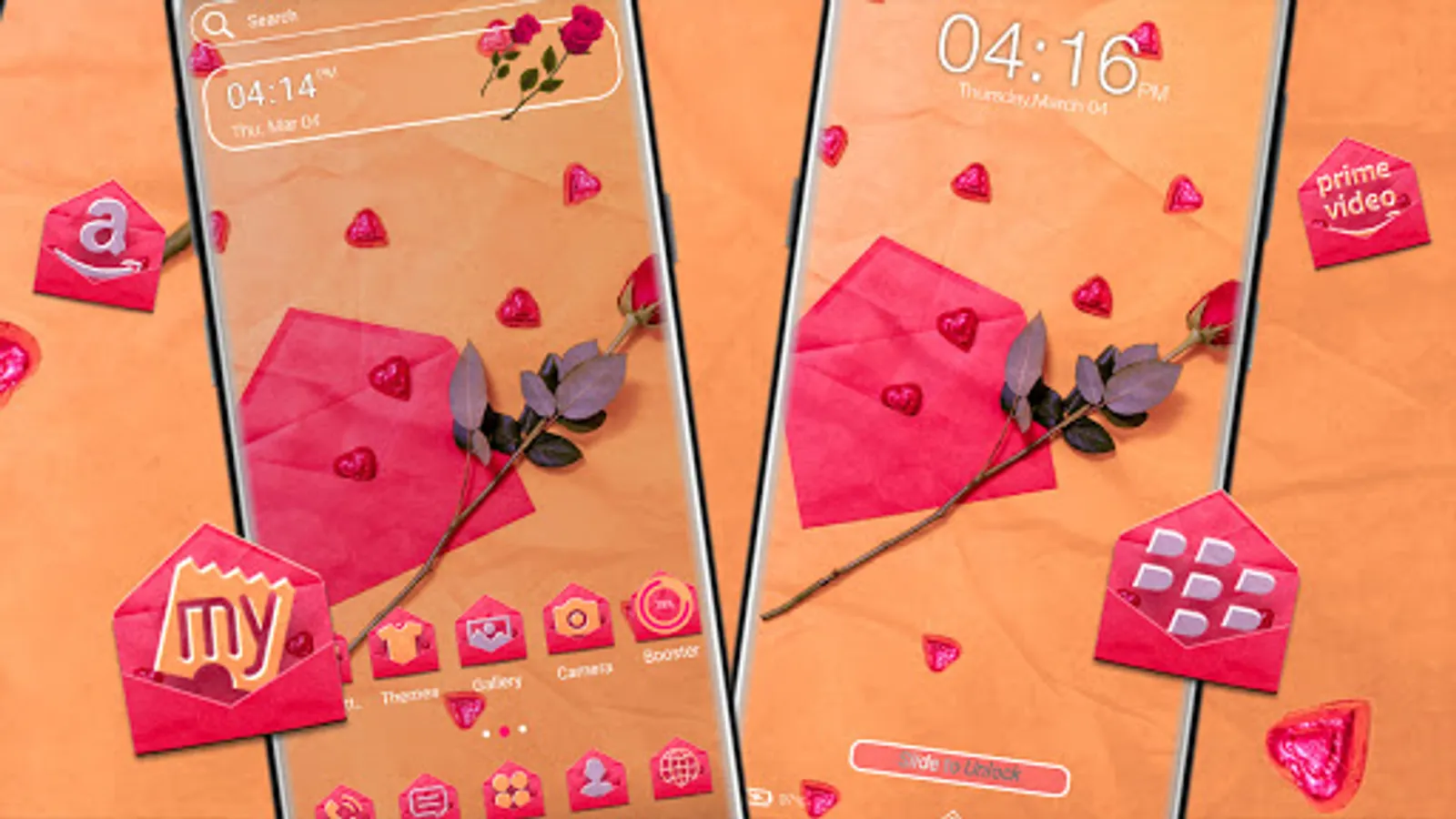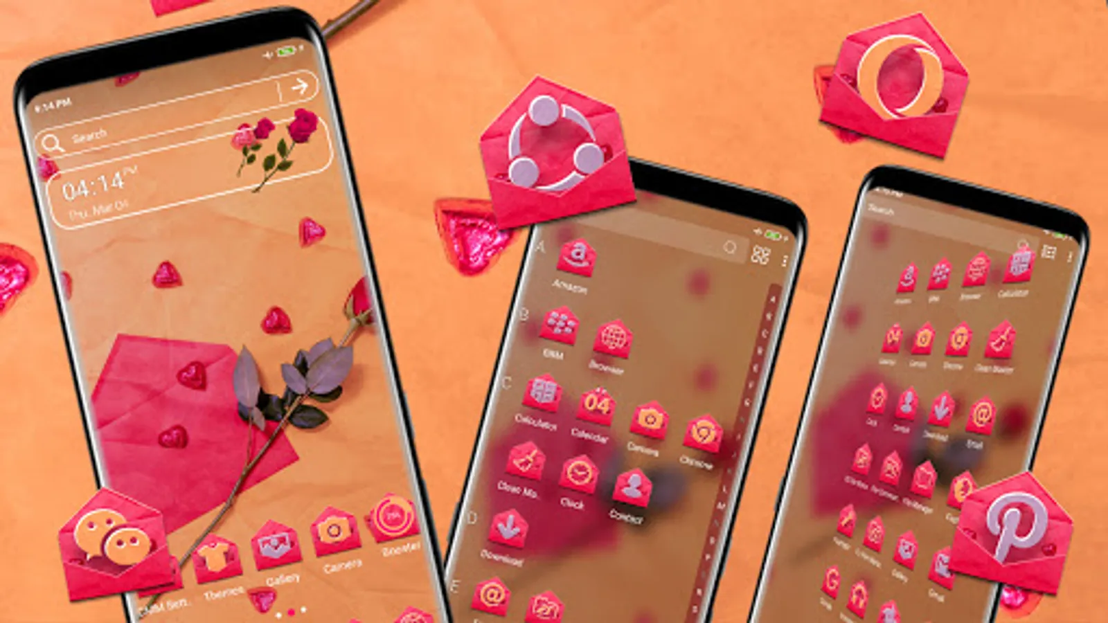 Rose Love Letter Theme has 3D transition effects on screens and folders switching and Elegant and simple 3D screen navigation.