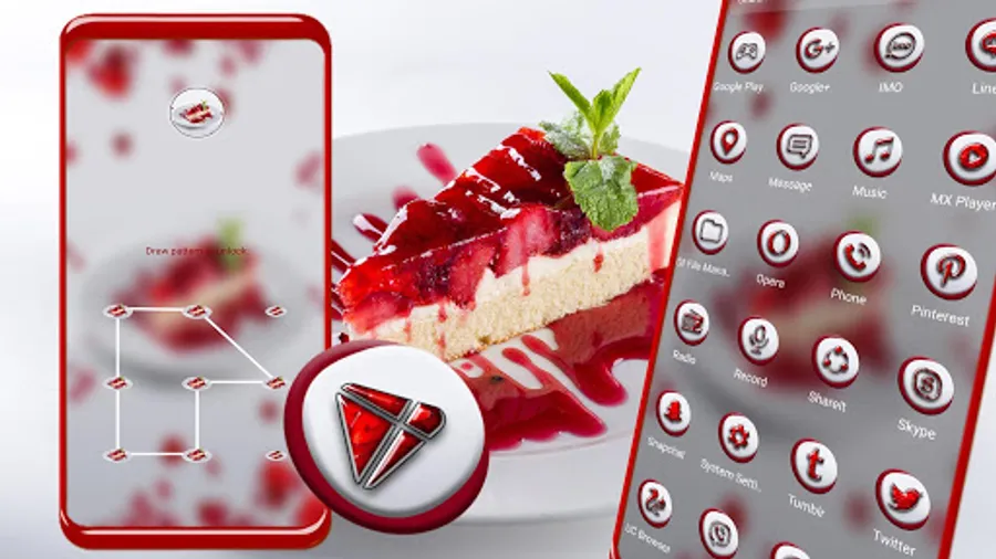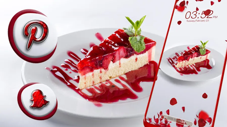 This Theme also include screen lock (locker) to protects your phone from intruders with personalized Strawberry Cake Slice theme experience