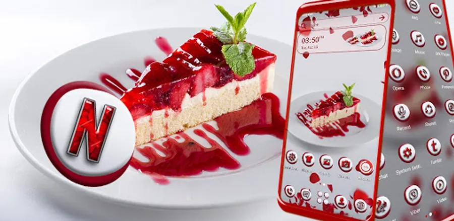 Strawberry Cake Slice Theme has 3D transition effects on screens and folders switching and Elegant and simple 3D screen navigation.