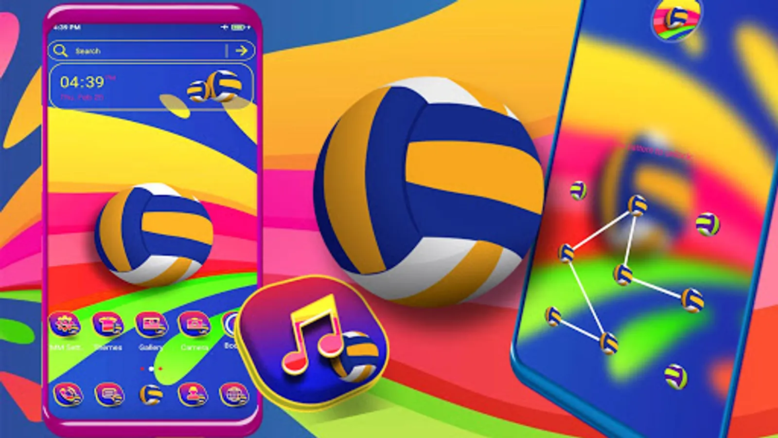 Volleyball Theme has 3D transition effects on screens and folders switching and Elegant and simple 3D screen navigation.