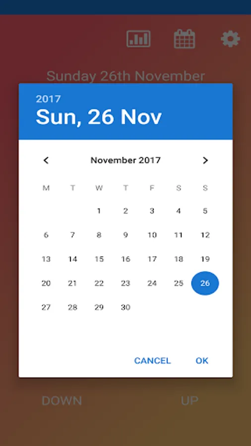 This app has just two buttons: calorie up and calorie down.