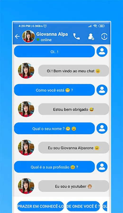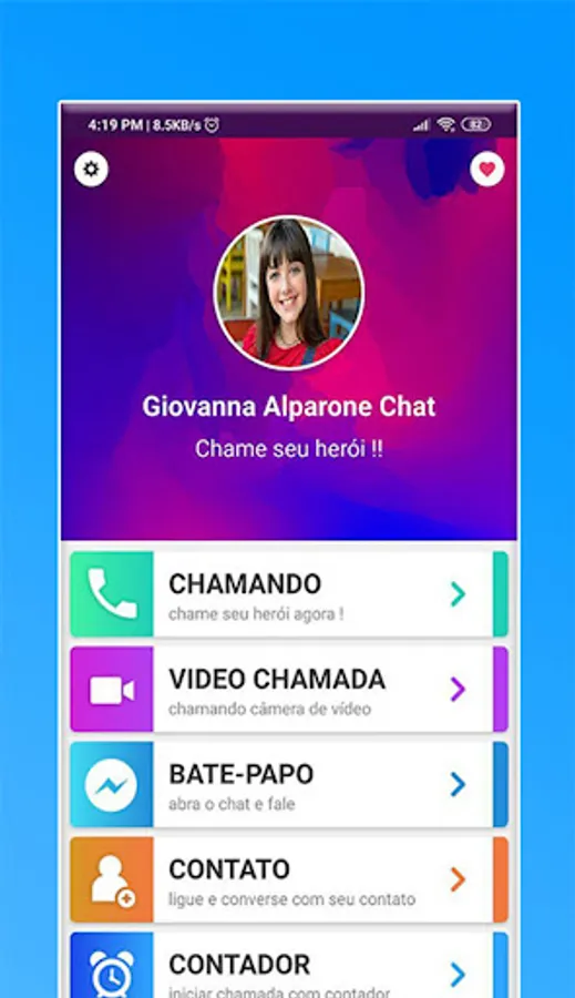 Hoje, o está chegando com muitos recursos, como você pode simular uma chamada falsa com a pessoa famosa que você gosta e seu ídolo, então aqui em chamada falsa, você também tem um bate-papo falso com ele e também recebendo uma chamada de vídeo interessante de app, e também há uma seção de contato em que você também pode entrar em contato chamando outras personalidades famosas, relacionadas a Giovanna Alparone.