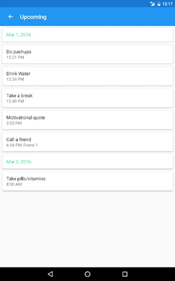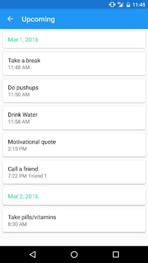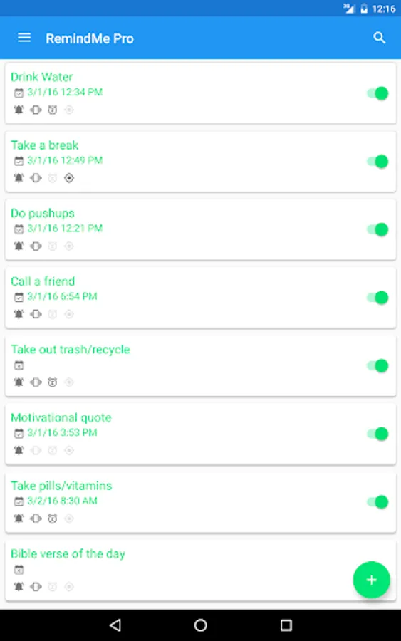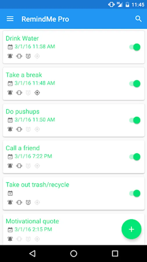 Backup and restore your reminders in app or even send your favorite reminder to a friend.