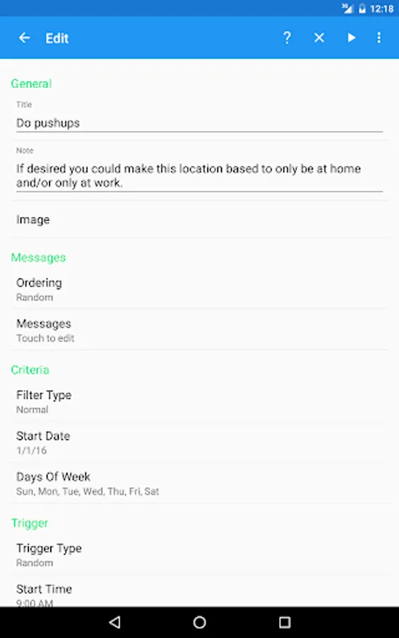 If you don't want random then you can still set specific times or interval timing. This lets you keep all your reminders in one place.