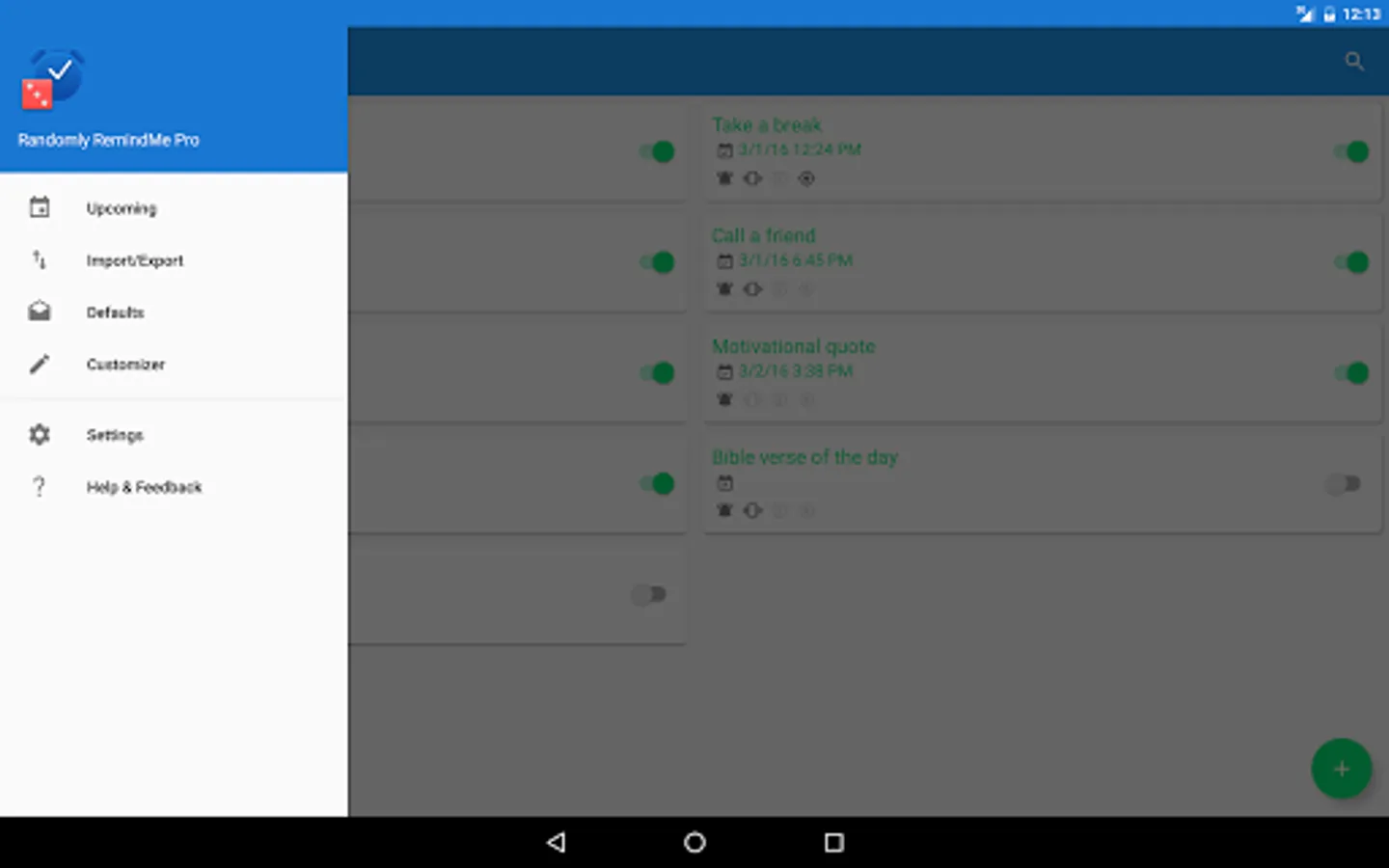 Important: Many devices have aggressive power management features enabled by default. You must whitelist Randomly RemindMe for it to work properly. If not you will likely not get reminders.