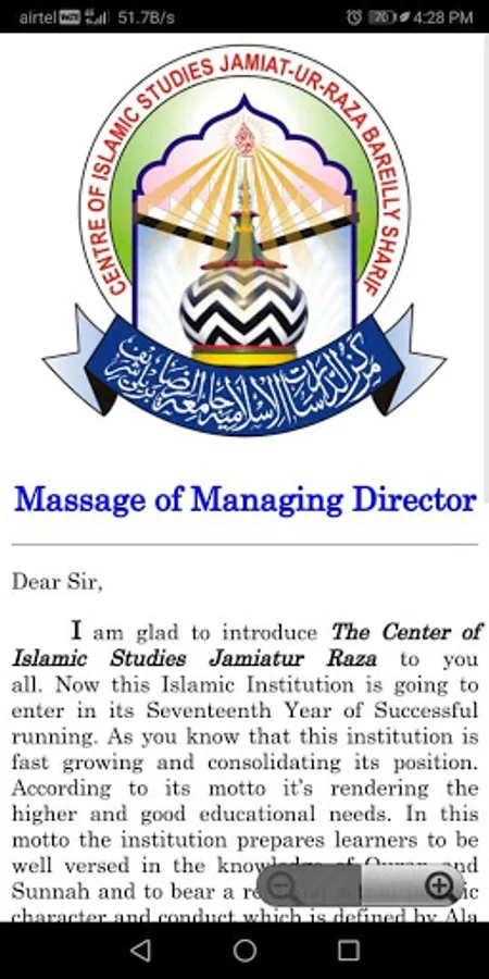 Official app of Centre of Islamic Studies Jamiatur Raza, Bareilly. With complete info for students as well as the viewers. This app contains prospectus, Admission forms, admission details and many more for the students.
