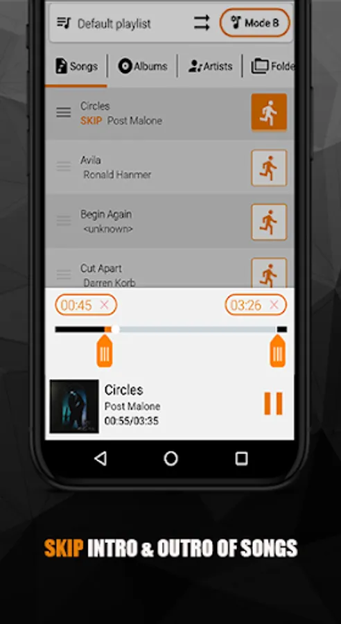 Just open your mp3 folder and select what songs you want to listen for each intensity.