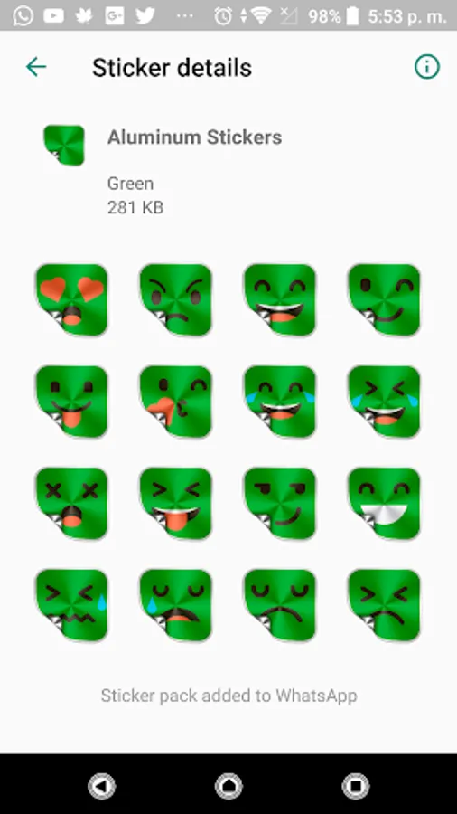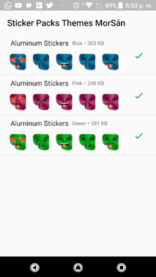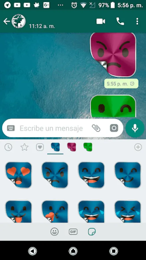 4.- Go to WhasApp, and go to the stickers section where the packages will be ready to communicate with the world.