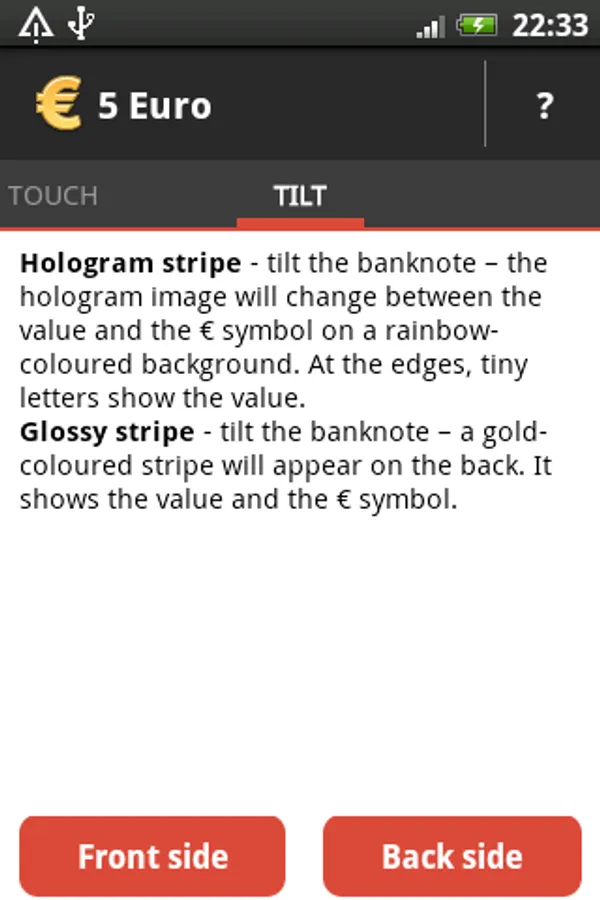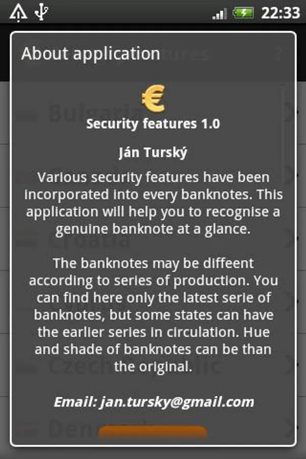 Do you know, if the banknotes in your wallet are genuine? Do you know all security features contains every banknote? Do you work with a large amount of money? If you do, so this application is for you.