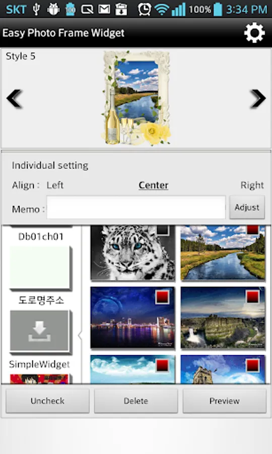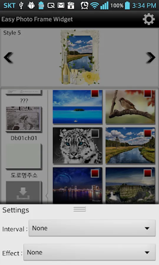 3. Select Photo Frame Widget on the widget list. And it will put a frame widget into space of home.