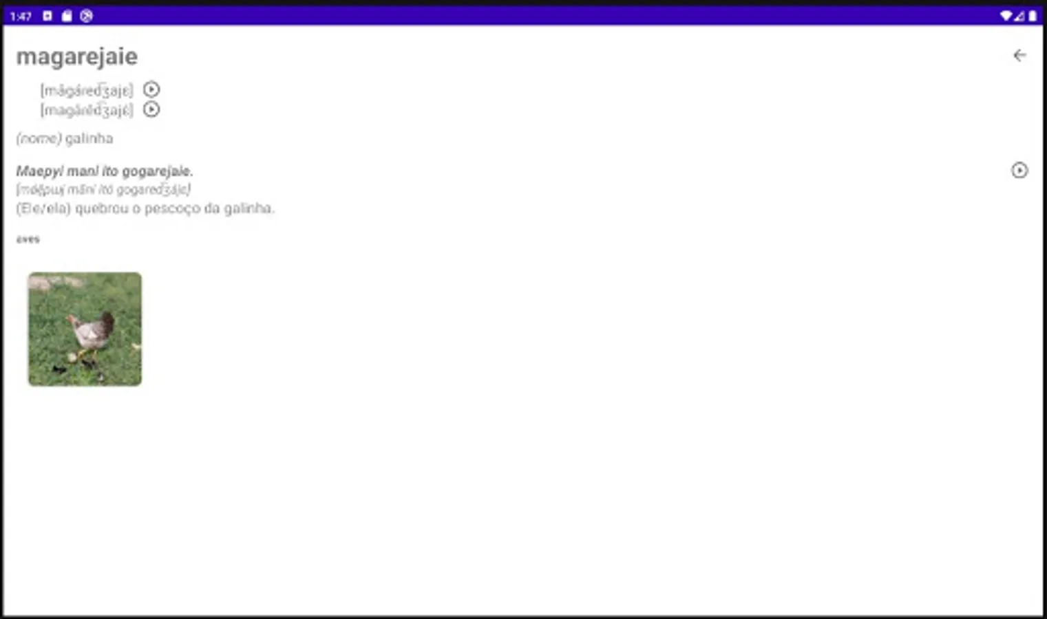 Mobile and tablet version of the Guató Multimedia Dictionary - Portuguese / Portuguese - Guató produced by indigenous and non-indigenous researchers within the scope of the Indigenous Languages Documentation Project (ProDoclin) of the Museu do Índio / Funai / UNESCO. This is a product of the Japiim Portal, a collaborative digital platform for the elaboration, edition and publication of multimedia dictionaries of indigenous languages. The Japiim Portal is an initiative of ProDoclin / Museu do Índio / Funai / UNESCO and also offers tools to support indigenous languages, such as keyboards for cell phones, tablets and computers specially designed for various indigenous languages spoken and written in Brazil.